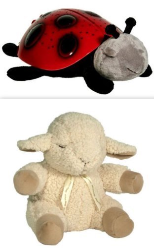 Perfect for your little one! Incldes a Twilight Ladybug and a Sleep Sheep set. Let your child experience the tranquility of sleeping under a bed of stars every night with the clever Twilight Ladybug, the latest friend in Cloud b's line of sleep companions. Fussy babies, darkness-fearing toddlers, and even insomniac adults will experience peacefulness and delight as this friendly plush ladybug, positioned on the floor in the center of a room, projects a starry night sky onto ceiling and walls from the workings under her plastic wings. Glowing shell will create a comforting nightlight effect in any of the ladybug's color options: red, blue, or green.