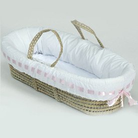 Eyelet Ribbon Moses Basket - Color: Pink Ribbon Description