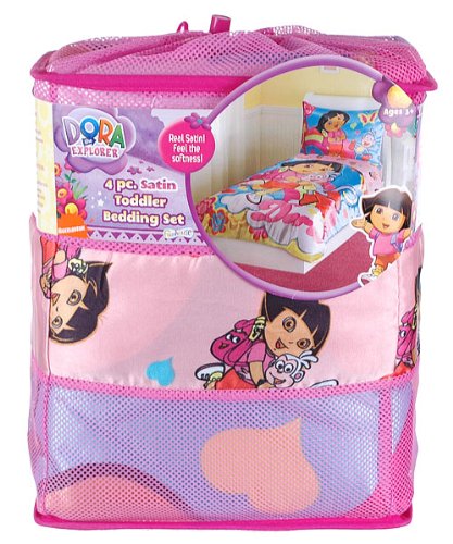 Dora the Explorer 4 Piece Satin Toddler Bedding Set.