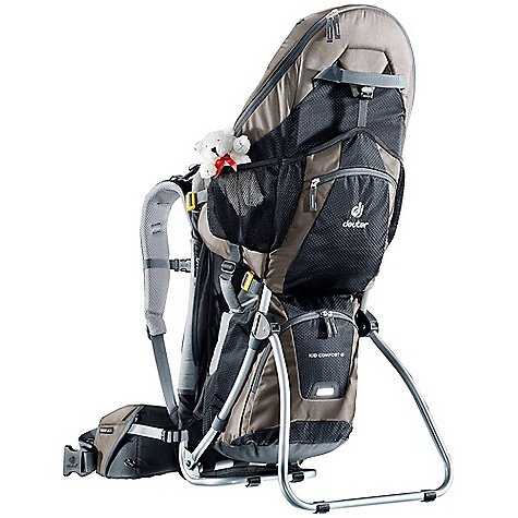 DECENT FEATURES of the Deuter Kids' Comfort III Pack Aircontact Back System Variquick Adjustable Shoulder Harness Variflex Hip Belt Shoulder Straps with 3D mesh lining Pull Forward Hip Belt Large Hip Belt Pocket Aircontact Back System: Load hauling with adjustable, ventilated back systems that reduce perspiration by 15% Adjustable 5 Point Child Safety Harness: With color-coded buckles offers maximum safety but also easy handling and adjustment Variquick: Customize your fit by making your individual height adjustment Side Entry Buckle: Allows access into child seat from the side Height Adjustable Seat: Engineered for children to comfortably and securely be seated Variflex: Pivoting hip belt will follow every movement and helps you keep your balance and maintain energy on difficult terrain Child Cockpit Features High back headrest with Integrated Sun Roof and Rain Cover (Kid Comfort IIIonly) Hydration Compatible Side entry child access Detachable/ Washable Dribble Pillow (Kid Comfort II and III only) Height adjustable seat Breathable Child Seat Cushions Safety Features TUV Approved and carry the GS certificate Rear View Mirror (Found In Hip belt Pocket, Kid Comfort III only) Adjustable 5 Point Child Safety Harness Frame padding adds child comfort Fold out kickstand Sturdy Frame Construction 3M Safety Blink Attachment Other Features Mesh side pockets Teddy Bear Large zipped cargo space under the seat Storage for optional Sun Roof/Rain Cover when not in use (Kid Comfort II only) Anti-chafe Wrap for Child's Inner Legs The SPECS Carry Capacity: 48.5 lbs / 22 kg Torso Length: Adjustable: 15 - 21" / 38 - 53 cm Volume: 1220 cubic inches / 20 liter Weight: 7 lbs 10 oz / 3.45 kg Dimension (H x W x D): 34" x 15" x 13" / 88 x 38 x 34 cm Material: Ripstop 210, Ballistic