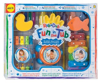 The Rub-a-Dub Fun in the Tub set includes six bathtub crayons, five bathtub finger paints and three musical instruments that'll make each bath time experience fun and enjoyable.