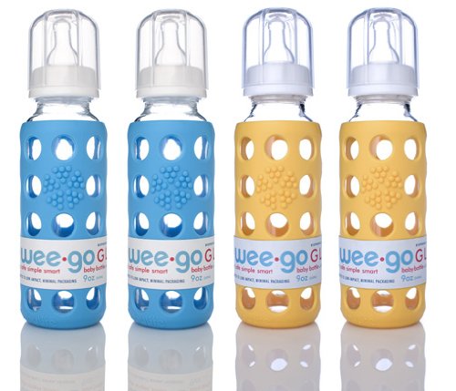 Wee-Go Glass baby bottles by LifeFactory (Babylife) are designed to grow with your child. The included clear cover can also serve as an easy to hold cup. Twist on the solid cap (sold separately) and use your bottles for storing juice or snacks. Perfect for a lunchbox or traveling. The bright colored silicone sleeve (patent pending) helps to protect the bottle from breakage and provides a great gripping surface and tactile experience during feeding. The bottle and sleeve can be boiled or put in the dishwasher together. They can also go in the freezer, making breast milk storage simple.