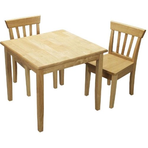 Finish:Natural Square Table Set Set includes table and 2 chairs Made of solid Hardwood Sure to delight, and become the center piece of any child's bedroom or playroom This set is a beautiful and sturdy piece of furntiure Easy assembly